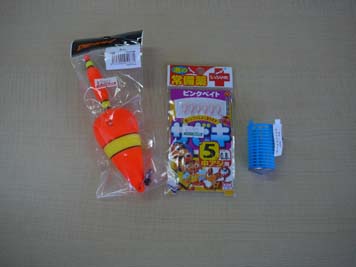 | サビキ釣りの場合は写真左の真ん中のサビキをサルカンに下に取り付けます。最後に写真左の右のオモリ付きカゴを取り付けます。ウキ釣りの場合はサルカンの下に写真右のチヌと書いてあるようなハリスと針を取り付けます。写真右の一番右下はサルカンとオモリとクッションゴムがついた物です。大物を釣る場合使います。 |